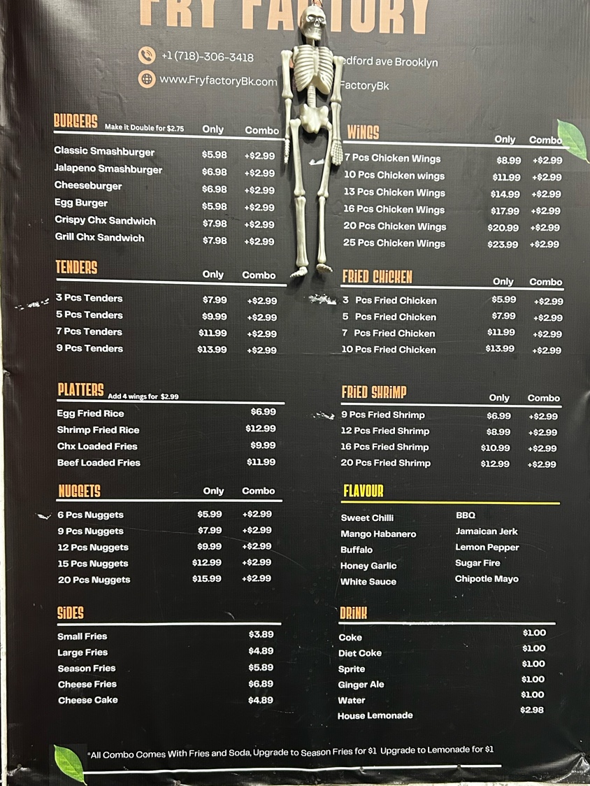 Welcome to Fry Factory, where crispy perfection meets juicy indulgence! Located in the heart of Brooklyn at 2193 Bedford Ave, this gem specializes in mouthwatering fried chicken and delectable shrimp. Every bite of their fried chicken, whether you choose 2, 5, or even 10 pieces, promises a crunchy exterior and tender interior that will make your taste buds dance. The shrimp are equally tempting, with options ranging from 9 to 20 pieces; each shrimp delivers a satisfying crunch that is simply irresistible.